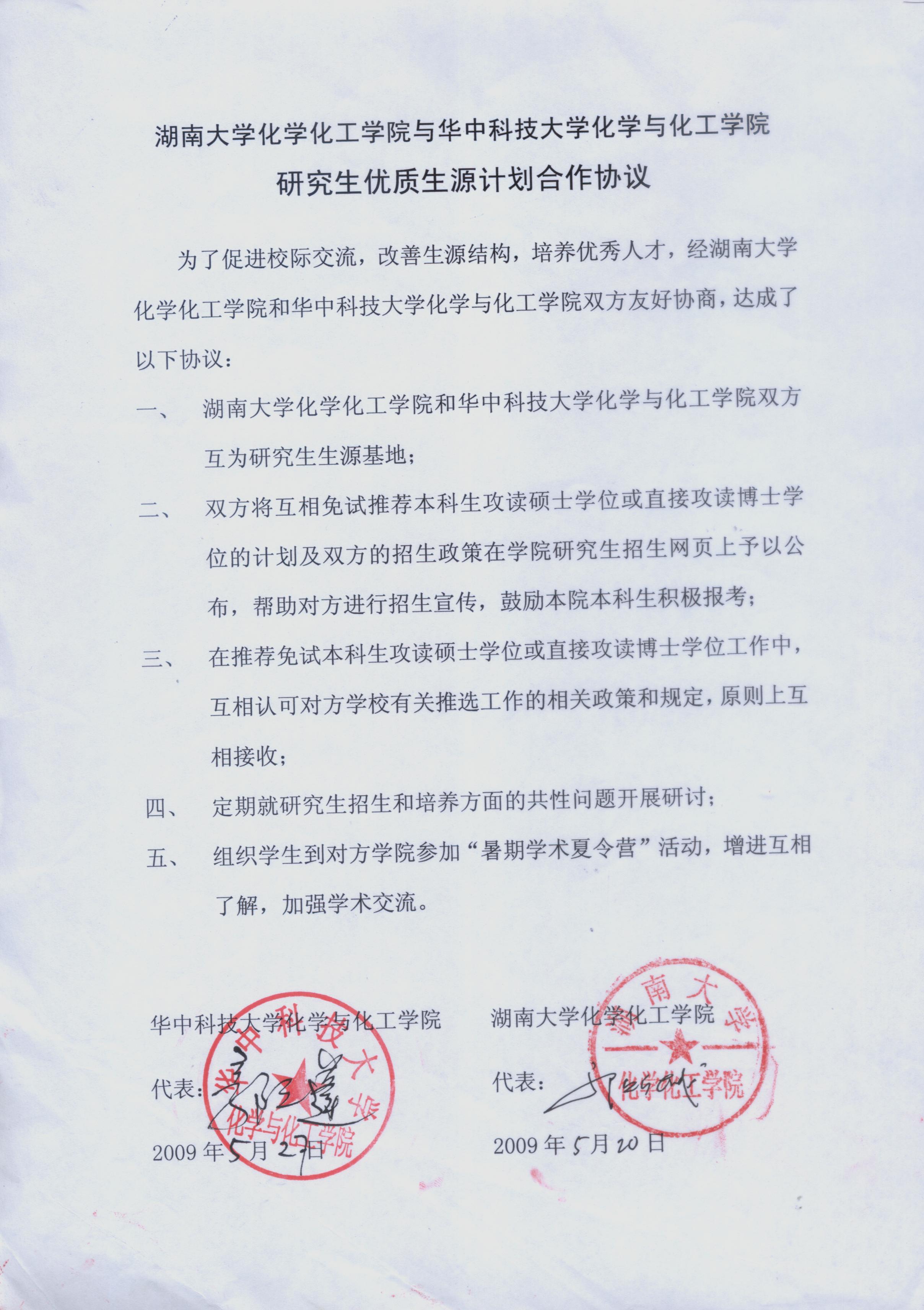 太阳集团城网站2017太阳集团城网站2017与华中科技大学化学与化工学院研究生优质生源计划合作协议