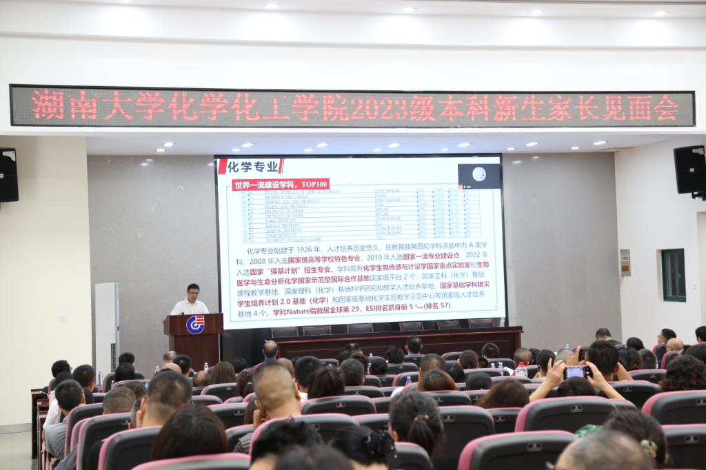 2023年8月27日上午9点,太阳集团城网站2017本科2023级新生家长会在太阳集团城网站2017太阳集团城网站2017新化工楼D区报告厅举行,会议由太阳集团城网站2017党委副书记李洪玉主持,与会的领导和嘉宾有太阳集团城网站2017院长张晓兵教授、院党委书记王双印教授、副院长梁志武教授、副院长李永军教授、副院长陈四海老师、化学生物传感与计量学国家重点实验室副主任羊小海教授、化学生物传感与计量学国家重点实验室副主任刘松教授、院长助理罗潇教授、化学系主任吴英鹏教授、化工系主任王少飞教授、应用化学系主任朱建教授、化学生物学与分子医学系主任刘剑波教授、2023级新生班主任、院学工办主任刘卓老师、全体辅导员老师,200余名2023级新生家长参会。