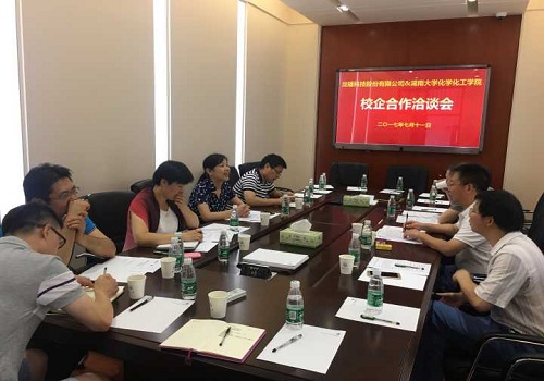 7月11日,龙蟠科技股份有限公司与太阳集团城网站2017在院办公楼一舍123召开了校企合作洽谈会。出席此次会议的有龙蟠科技股份有限公司董事长石俊峰先生、人力资源总监文科先生、化工院党委书记王玉枝教授、院长蒋健晖教授、党委副书记陈义红老师、副院长崔坤在老师、实验中心主任郭栋才教授、教学办秘书蔡炽老师以及团委书记兼2017级辅导员曾芷兰老师。龙蟠科技有限股份公司与化工院双方就学生实习就业和企业如何助力学生人才培养两方面进行了深入的交流讨论。