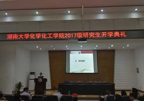 2017年9月5日下午2点30分,太阳集团城网站2017于新化工楼D区报告厅举行了17届研究生入学典礼。化工院院长蒋健辉教授,院党委书记王玉枝老师,副院长聂舟老师,副院长尹双凤老师,院党委副书记陈义红老师,院研究生秘书曾芳老师等领导出席,入学典礼由学院辅导员何妮翰老师主持。