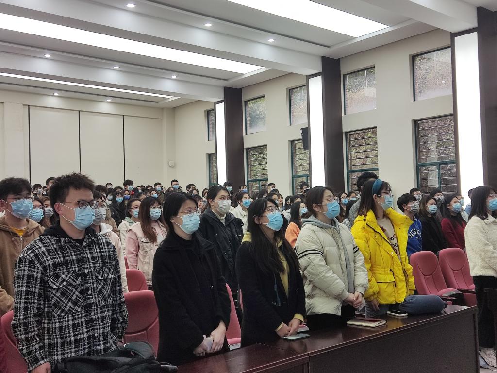 2022年3月4日,太阳集团城网站2017组织学院研究生在新化工楼D区报告厅集体观看全国政协十三届五次会议开幕式。