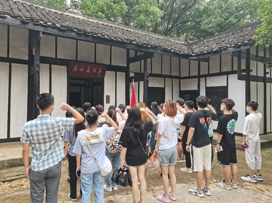 在蔡和森故居前,面对鲜红的党旗,18级全体毕业生党员举起右臂,在支部副书记张懿同志的带领下,庄严宣誓。重温入党誓词使毕业生党员再次受到了一次心灵的洗礼、思想的震撼。之后,在张懿同志的带领下,全体党员参观了陈列室,深入了解了这段历史。