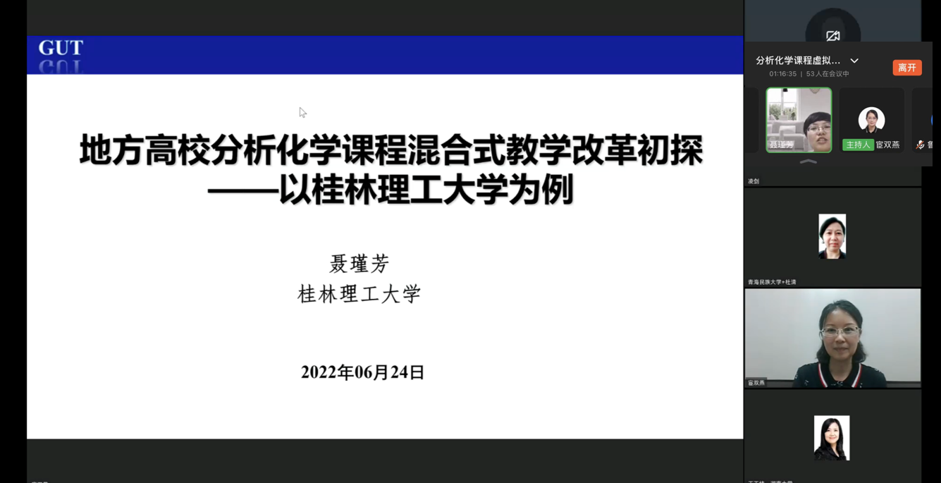 6月24日晚,分析化学课程虚拟教研室举行了第六期讲座,由太阳集团城网站2017宦双燕教授主持,来自桂林理工大学的聂瑾芳教授为主讲嘉宾,她以桂林理工大学为例介绍了地方高校如何开展分析化学课程混合式教学改革。