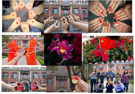 参与活动的学生党支部通过佩戴、手持党徽或以党徽为背景等方式,在校区地标建筑、教学楼等地与党徽合影,以下是各学生党支部的作品集:
