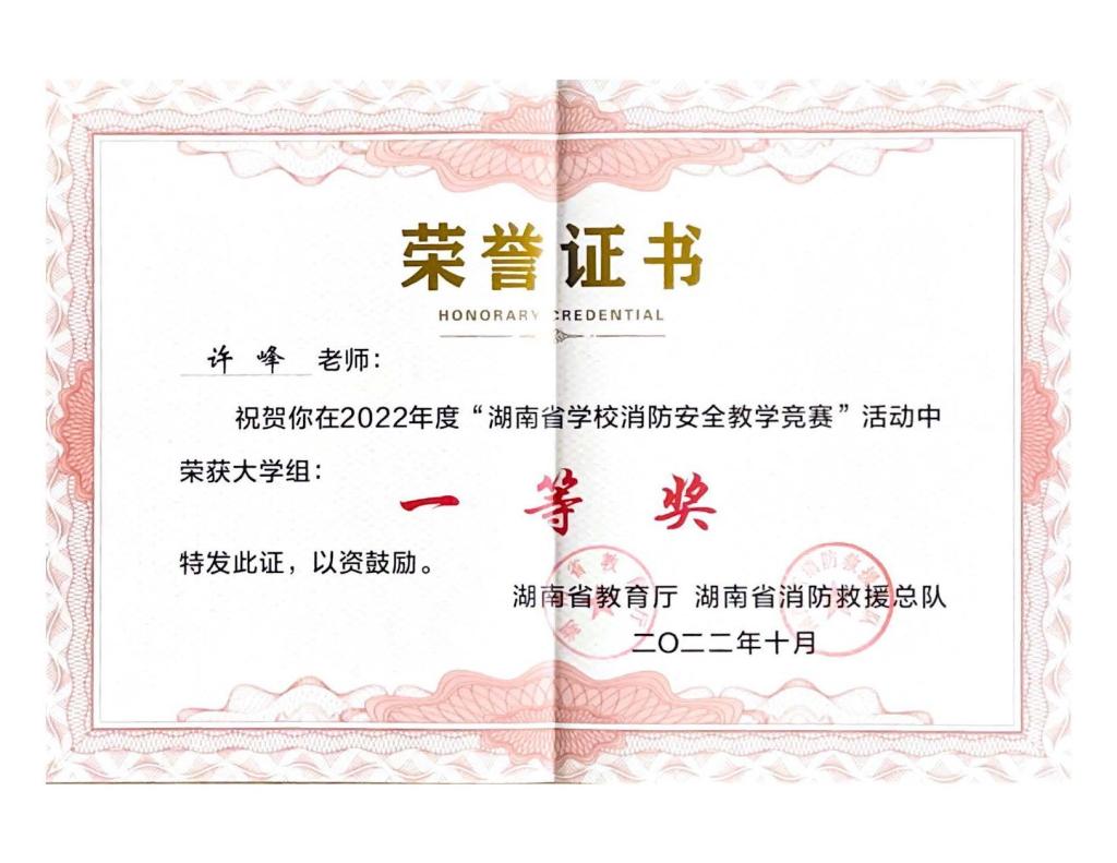 11月12日,省教育厅、省消防救援总队公布了2022年全省学校消防安全教育教学竞赛获奖名单,太阳城官网许峰老师的《爆炸事故:化学实验室常见易爆物质》荣获大学组一等奖。