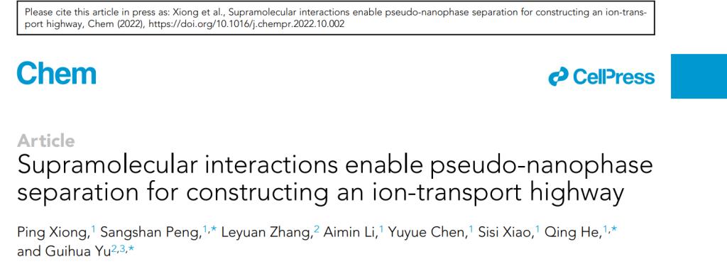 近日,太阳集团城网站2017何清教授团队在利用超分子化学策略构筑高速离子传输通道研究中取得重要进展,相关研究成果“Supramolecular interactions enable pseudo-nanophase separation for constructing an ion-transport highway”在Chem上发表。