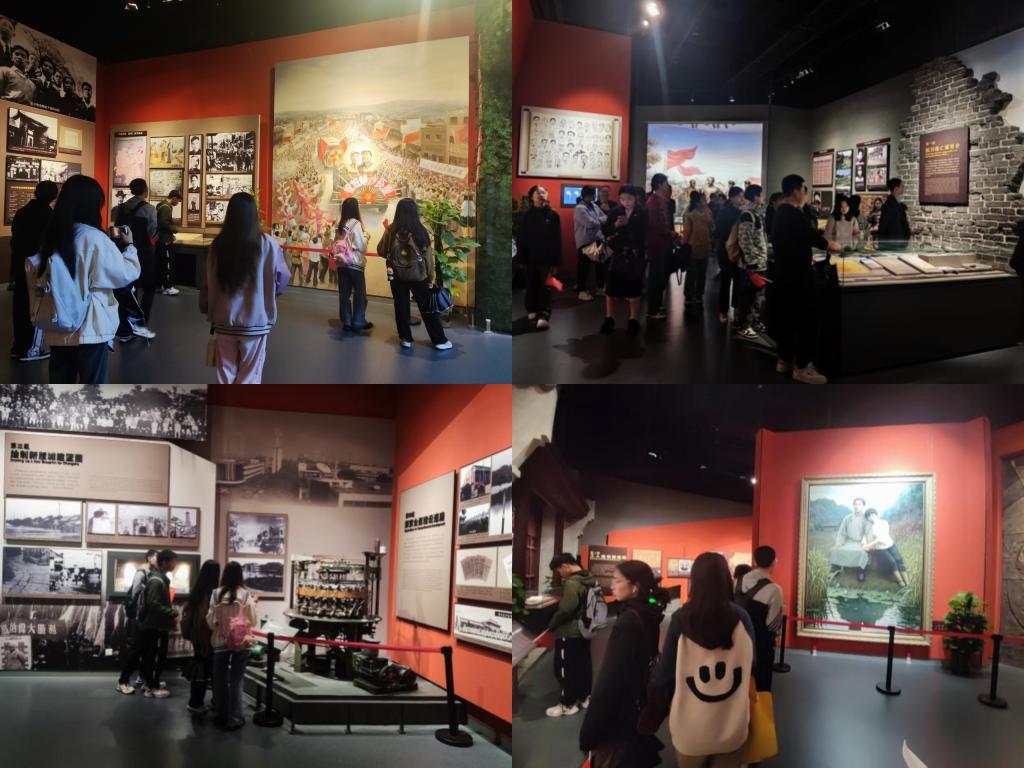 上午8:10,同学们在五食堂前集合签到并领取活动所需物资,然后一起乘坐大巴前往长沙党史馆,同学们在参观党史馆的同时寻找“寻宝打卡点”完成打卡任务,完成打卡任务的同学起(终)点工作人员处登记排名,活动结束后于进门处毛主席像处合影留念。