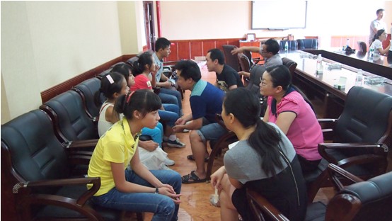 2013年7月30日,盈成·太阳集团城网站2017太阳集团城网站2017暑期“三下乡”社会实践团队在常德市汉寿县一中召开学习经验交流会,我们诚挚的邀请到了汉寿县一中教研科主任聂文老师与姚韶俞等优秀教师。同时与会的还有来自月明潭乡中心学校的带队老师刘老师和四名留守儿童、汉寿县一中数十名学生以及化工院学工办主任曾芳老师、院分团委书记李辰老师、陈晓晖老师、曾芷兰老师。