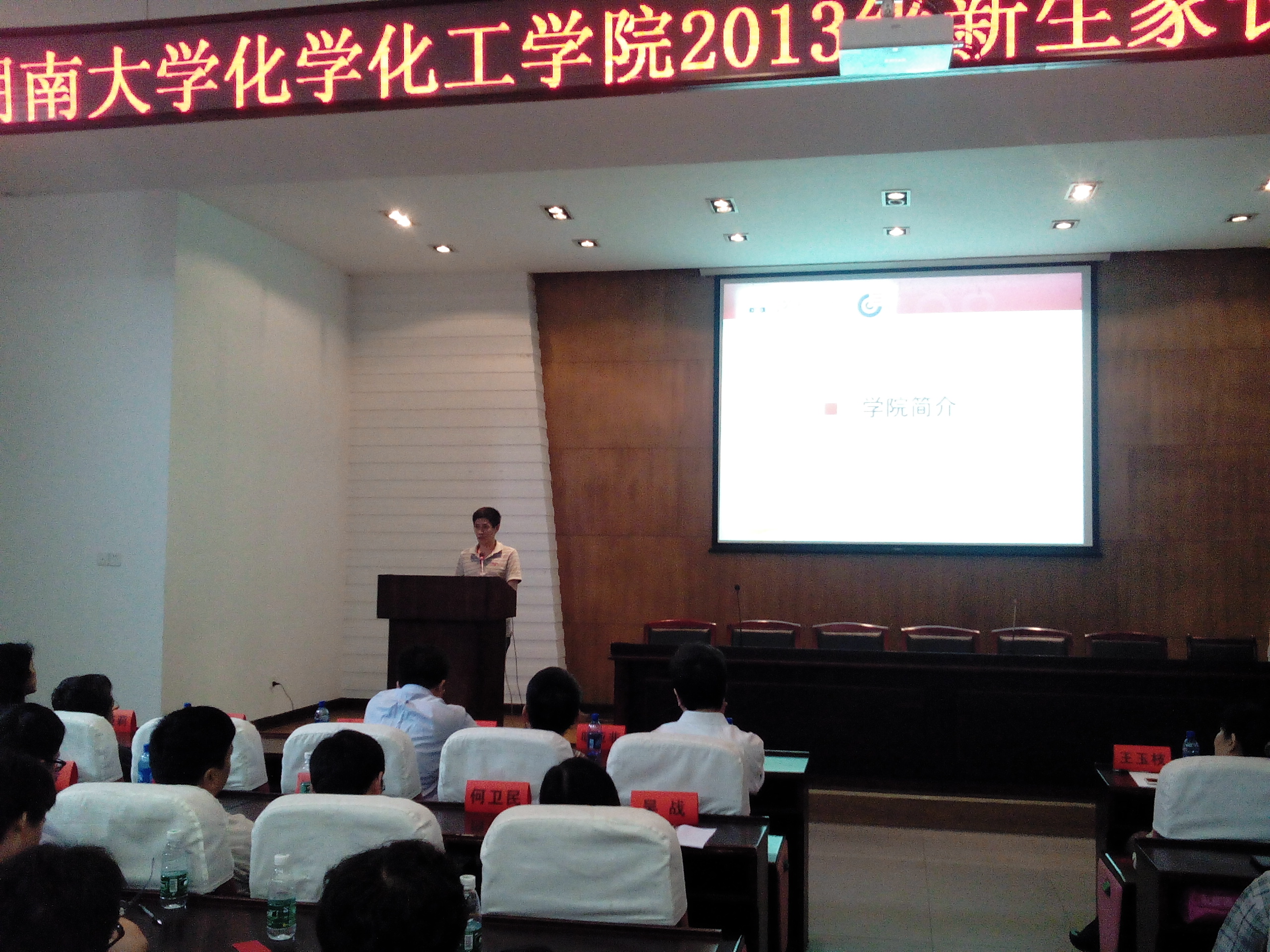 接着,学院院长蒋健晖教授做学院简介。蒋院长从办学历史、教学情况、师资力量、科研成果、学生工作亮点等多个角度向大家介绍了学院基本情况。太阳集团城网站2017是一个拥有国家重点实验室、分析化学国家重点学科及多个省重点学科的优秀高校院系,此外,学院还有3位中国科学院院士及多个国内外知名教授,学院还多次获得国家教学成果奖、省级教学成果奖等多种奖项,培育了一批又一批优秀的化工人才,科研成果突出,育人成效显著。到会的新生家长听了蒋院长的学院简介,不断地用热烈的掌声表示对学院祝贺,同时对孩子就读于太阳集团城网站2017感到放心与喜悦。