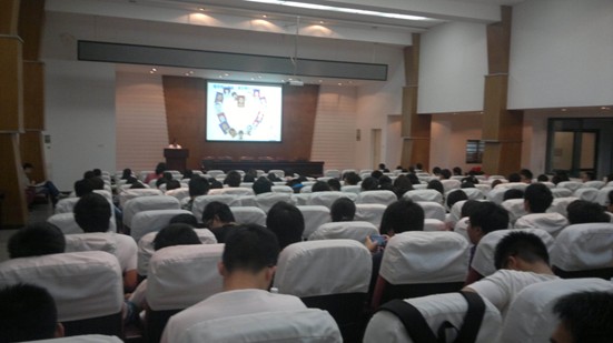 在六点二十分左右,2012级全体学生就已经在各班班长的带领下有序地进入到报告厅并安静地等待着大会的召开。大会开始后,按照化基、工一,化一、化二、化硕、工二、工三以及应一和应二的顺序,各班班长首先展示了本班的整体学习情况,挂科人数与挂科比率,然后与大一上学期的成绩进行了比较,找出了自己的优势与劣势,最后提出了本年度应该达到的目标与具体的实践与操作方案。同学们听得很认真也很出神,个个都在思考着如何将这一个个的学习目标细化到自己每一天的学习生活中。