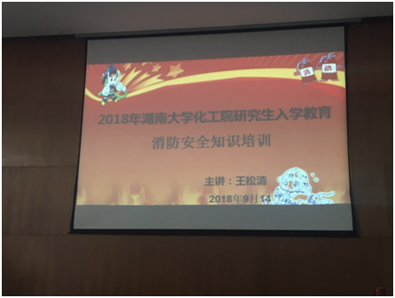 为了提高太阳城官网研究生的实验室安全意识,预防并减少实验室安全事故的发生,2018年9月14日下午两点三十分,太阳集团城网站2017于新化工楼D区报告厅举行了2018级研究生入学主题教育之消防安全与消防演习。本次消防安全讲座的主讲人是长沙市湘安消防公益服务中心的王松清王教官,同时得到校保卫处的大力支持。