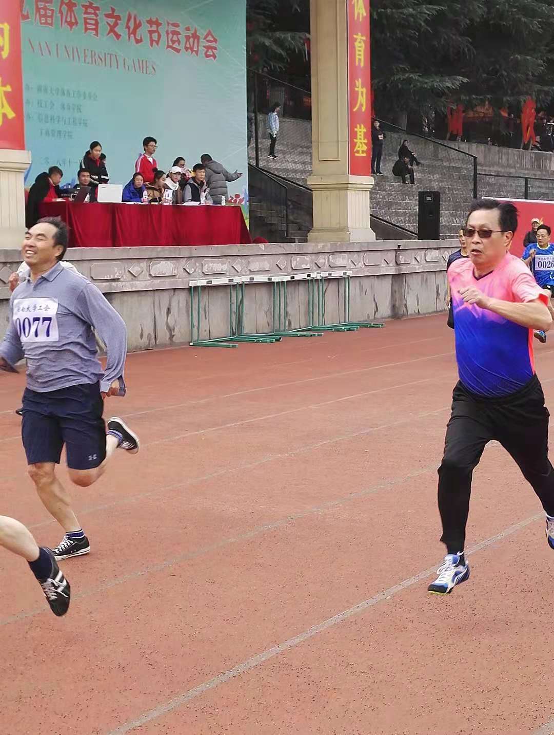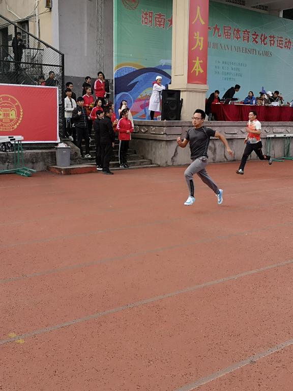 朱建老师获得男子甲方组100米第三名和男子甲组跳远第五名