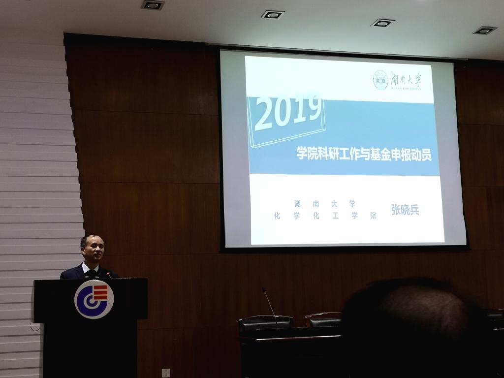 张晓兵院长作2019年学院科研工作与基金申请动员报告