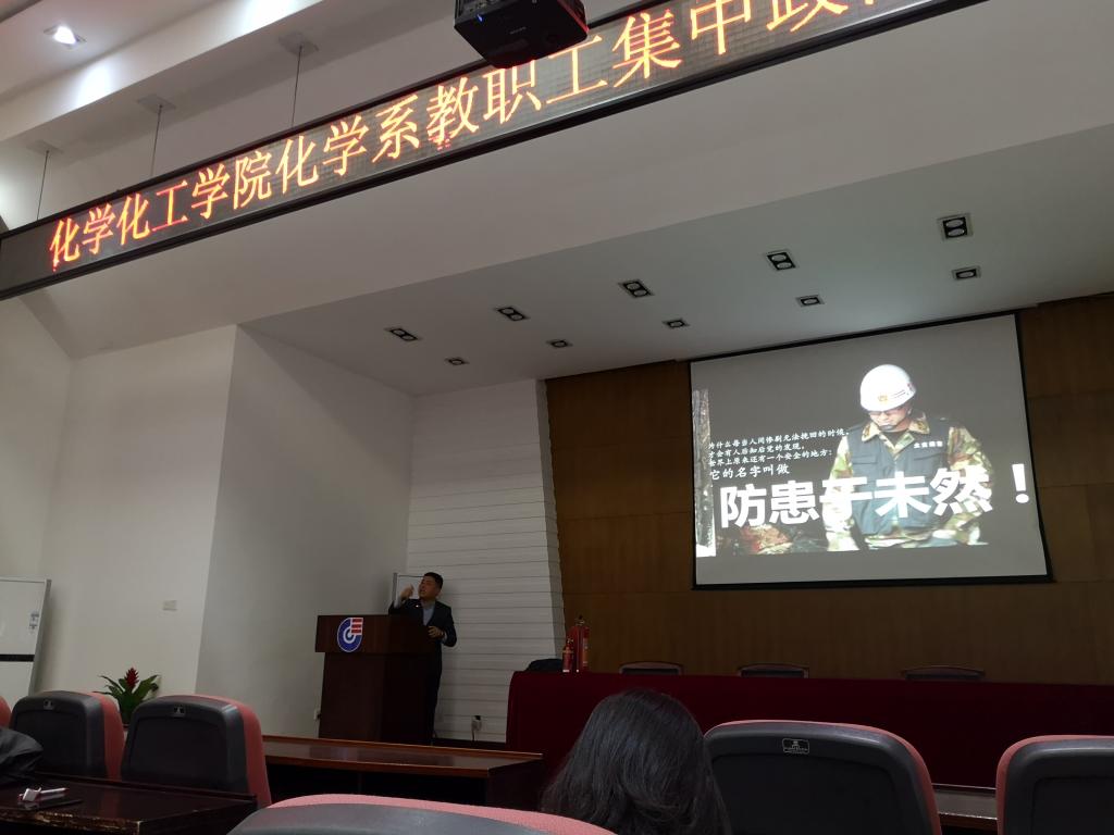 2019年5月7日,太阳集团城网站2017化学系教工第二党支部在新化工楼D区学术报告厅召开了一次别开生面的民主生活会,就师生关心的消防安全问题进行学习和讨论。参加本次民主生活会的除支部全体党员外,还有相关实验室的学生。
