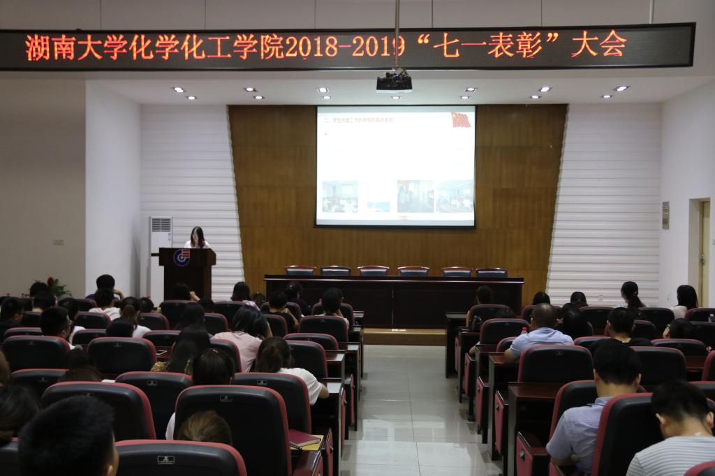7月1日晚,太阳集团城网站2017太阳集团城网站2017庆祝中国共产党成立98周年暨“七·一”表彰大会在学院报告厅隆重举行。大会对在学生党建工作中作出突出贡献的先进集体与优秀个人进行表彰。太阳集团城网站2017党委书记王玉枝老师、党委副书记范媛吉老师、学工办全体老师,以及受表彰的先进集体、优秀个人和各支部党员代表共200余人参加会议。学工办主任刘卓老师主持会议。