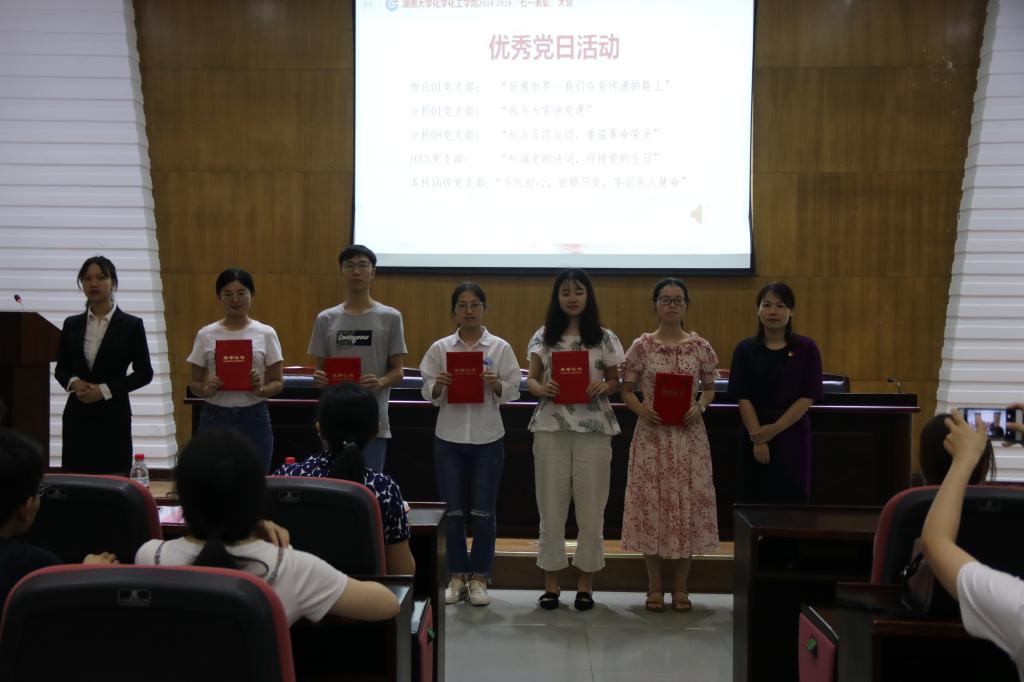 大会在雄壮的《国歌》声中正式开始。全体党员面向党旗,向伟大的中国共产党致以深深的祝福和敬意;重温入党誓词,唤起内心不变的使命。对标一流改革创新,解放思想学习先进。研究生辅导员何妮翰老师向参会人员作《2018-2019年度太阳集团城网站2017学生党建工作报告》。报告中何妮翰介绍了太阳集团城网站2017学生党建工作的基本情况、工作思路和具体措施等。展示了太阳集团城网站2017在2018-2019年度形式多样的党建活动、丰富多彩的党内生活,尤其是在支部建设和管理上的不断创新,依托实验室重新构建学生党支部。党委副书记范媛吉老师介绍了太阳集团城网站2017先进集体和优秀个人的申报、推荐及评选情况,并宣读《中共太阳集团城网站2017太阳集团城网站2017委员会关于2018-2019年度“七·一”表彰的决定》。随后,出席会议的领导和老师为受表彰的集体和个人依次颁奖。先进集体和优秀个人代表依次上台进行展示,列举了各自在学生党建工作中的举措,以及发展中取得的荣誉,均表示需在不断学习中树立远大理想、在基层实践中练就过硬本领、在社会服务中担当时代责任,汇报了如何成长为有战斗力的党支部和有影响力的优秀学生党员的心得体会。