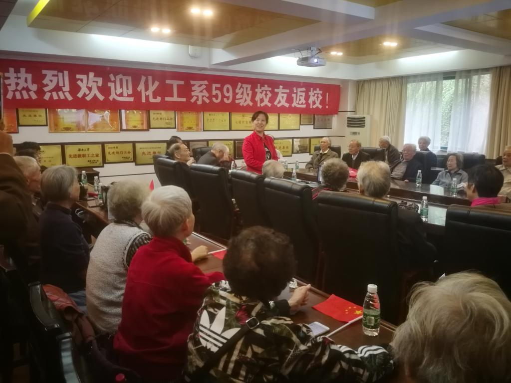 金秋十月,丹桂飘香,我校化工系59级30多位校友不顾高龄路远从各地齐聚母校,隆重举行纪念入学六十周年聚会。10月12日在太阳集团城网站2017新楼D区二楼会议室举行了隆重的纪念大会,太阳集团城网站2017党委书记王玉枝教授及原化学化工系主任张志华教授等领导出席,原化工系59级授课教师朱云生、曹声春、王昌贵、杨礼嫦、刘觉民等老师应邀参会。