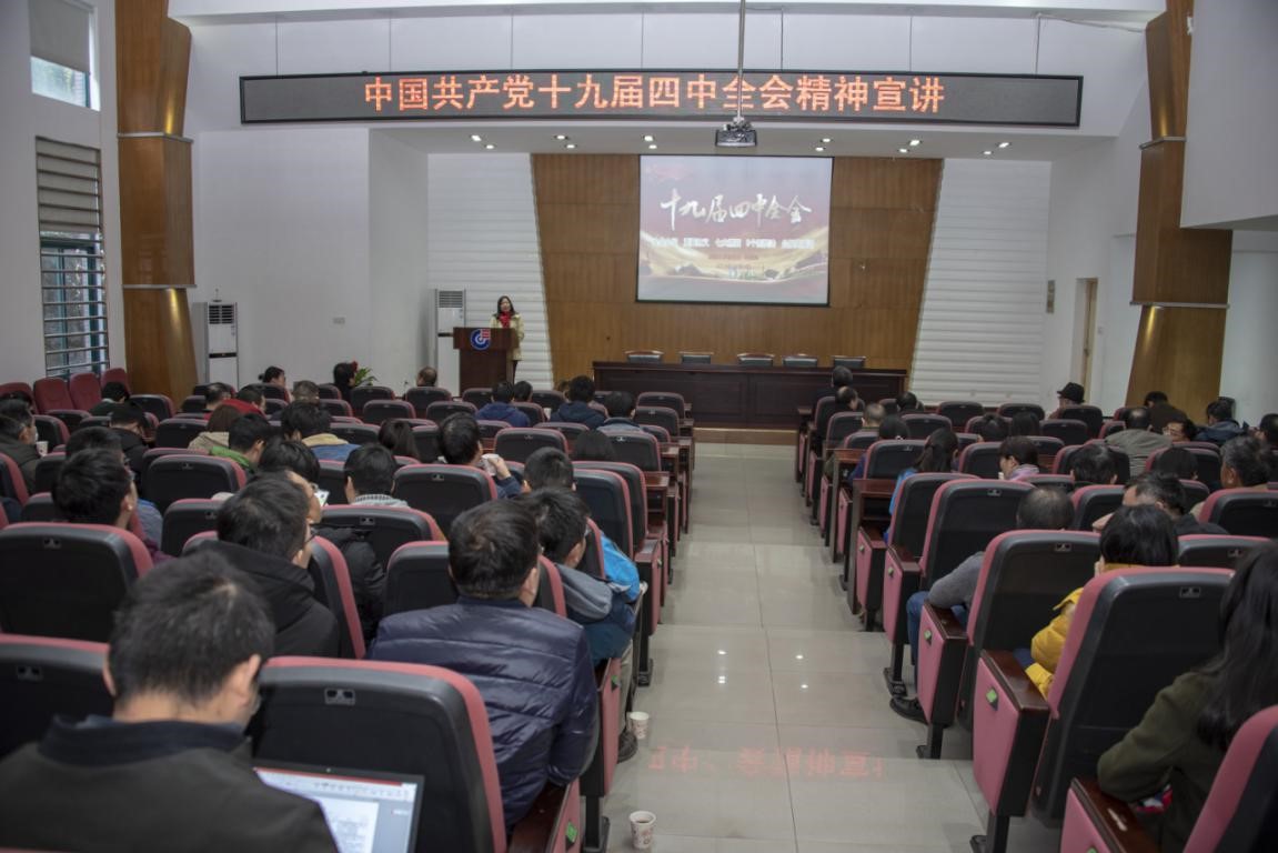 12月3日下午,副校长蒋健晖在太阳集团城网站2017D区报告厅进行十九届四中全会专题宣讲,太阳集团城网站2017全体教职工参会。
