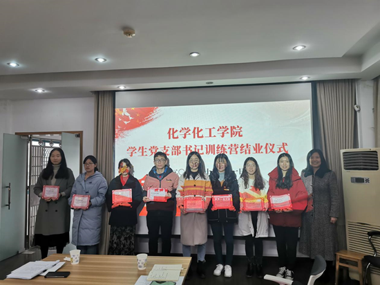 会上,王玉枝书记、潘刚峰副书记、刘松副书记为圆满完成学生党支部书记训练营的28名学生党支部书记颁发结业证书。
