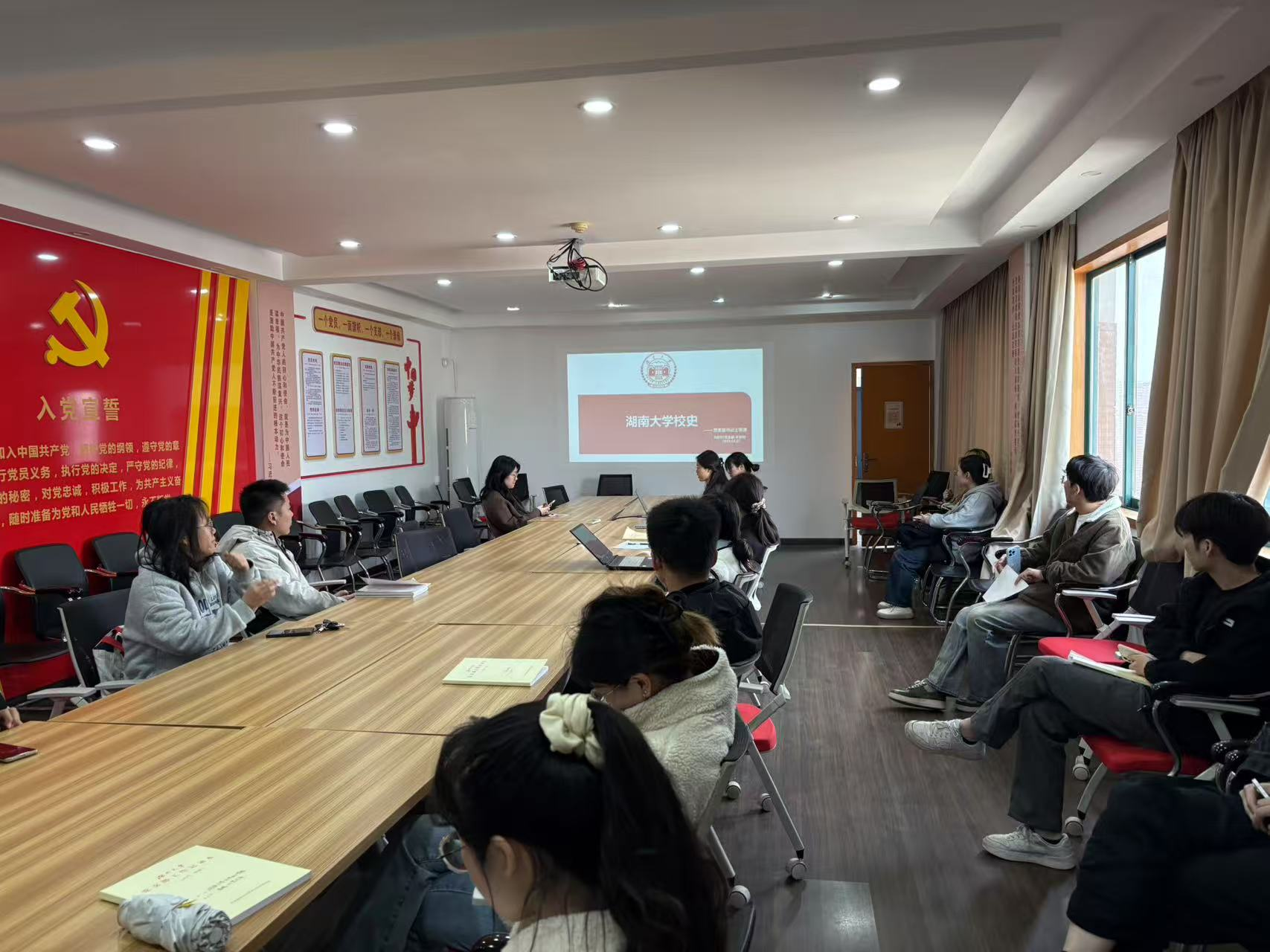 会议进入支部书记讲党课环节。由分析01党支部书记李君娴和分析06党支部书记赖如惠分别对太阳集团城网站2017校史和太阳集团城网站2017院史进行讲解。