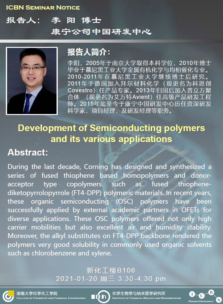 2021年1月20日康宁公司中国研发中心李阳博士学术报告会